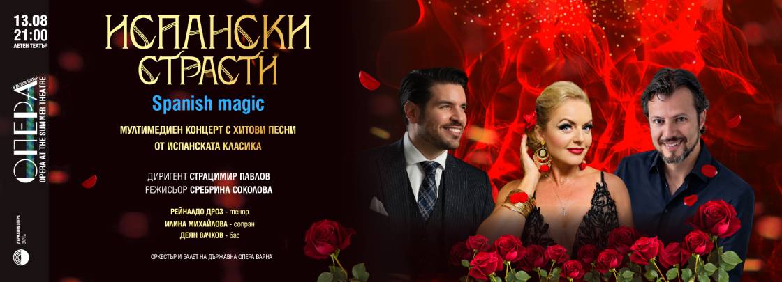 „Испански страсти“ е музикална среща с романтиката, драмата и красотата на испанския свят — концерт, който съчетава популярни мелодии, сценична енергия и силно емоционално въздействие в едно запомнящо се преживяване.