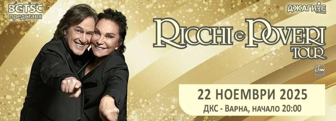 Италианските музикални легенди и любимци на няколко поколения меломани RICCHI E POVERI ще изнесат концерт в морската ни столица на 22 ноември тази година! Мястото на дългоочакваното събитие за град Варна е зала „Конгресна“ на Дворец на Културата и Спорта.